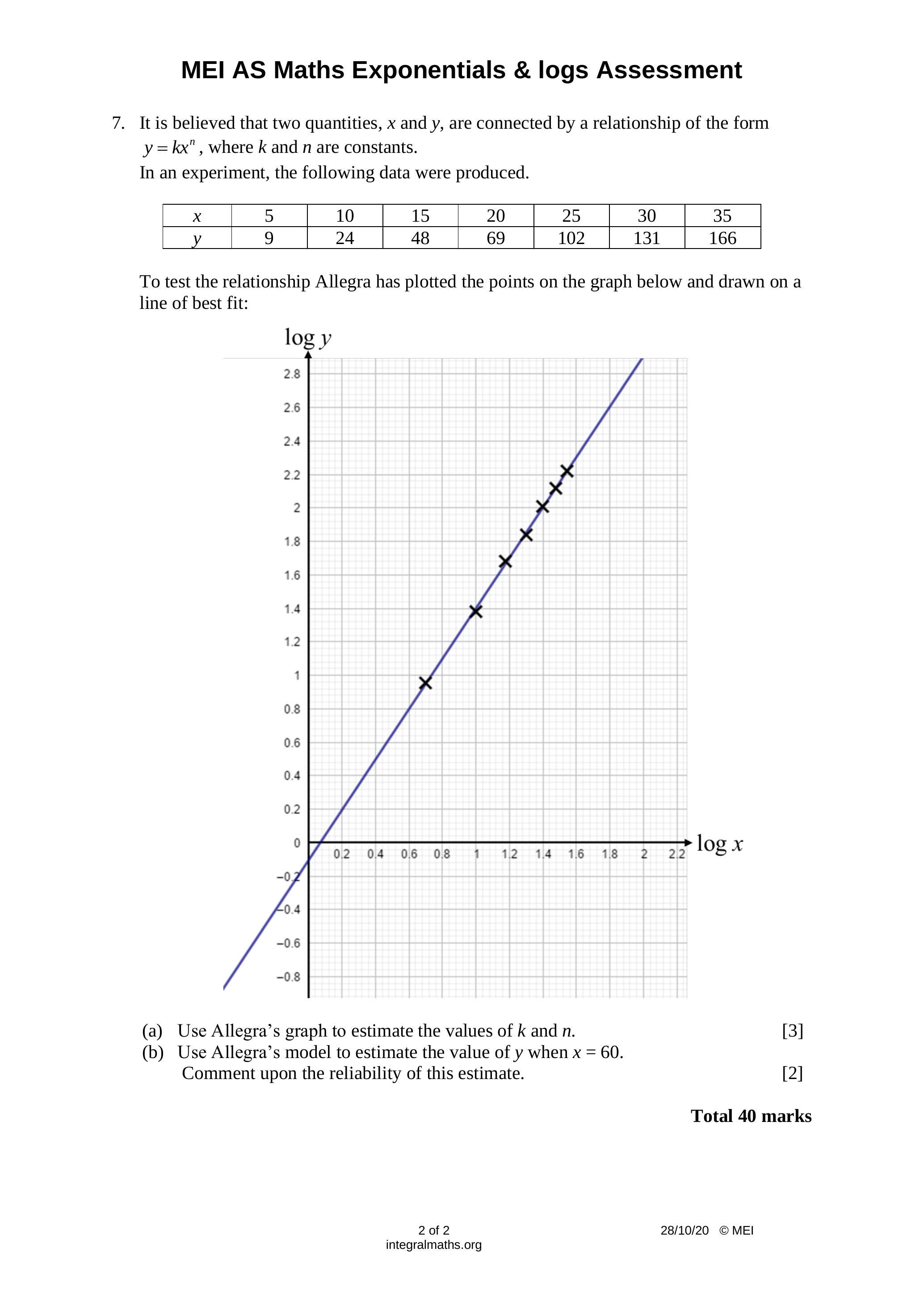 (a) Use logarithms to draw a linear graph.